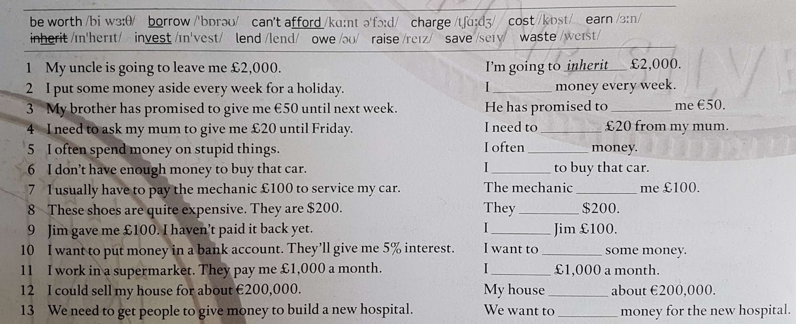 1. a. Listen to a song about money. Complete the gaps with phrases A-G.